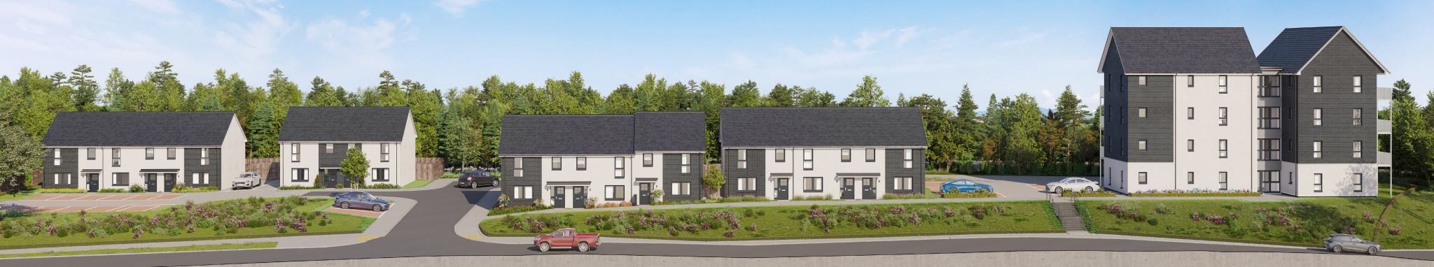 With rising energy costs, choosing a new home is not just about aesthetics — it’s also about efficiency. These apartments and terrace homes in Caskieberran are built to modern standards that significantly outperform older properties. Energy-efficient heating, high-performance windows, and insulation mean lower running costs and a more sustainable lifestyle.